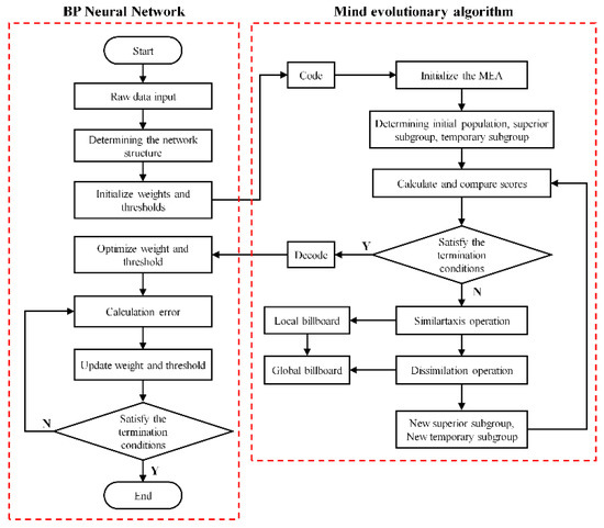Based on the above ideas, the flow chart of the MEA-BP is finally determined, as shown in Figure 10, and the processes are as follows.