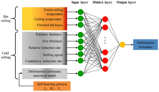 - In this work, the prediction method proposed by employing both cold and hot rolling data has a more robust prediction capability for cold rolling deformation resistance. More factors, such as the chemical composition, the accelerated cooling parameters after hot rolling and the parameters of thermomechanical hot rolling, may be considered in the following work to further improve the prediction accuracy.