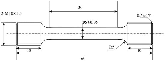 A typical Gen3 Al–Li alloy 2195 was chosen for this experiment, whose composition was Al-3.86Cu-0.89Li-0.38Mg-0.28Ag-0.12Zr-0.04Fe (wt. %). The alloy was supplied as a 15 mm thick plate in the T8 state. The specimens used for the tensile experiments were taken along the rolling direction; more details about the specimens are shown in Figure 1.
