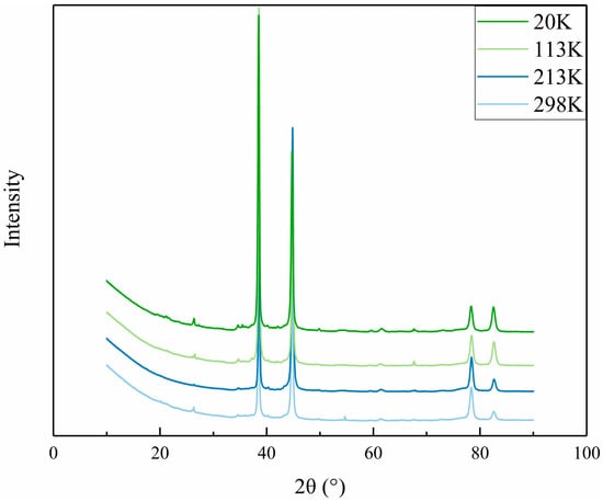As the temperature decreases, the dislocation densities are 2 × 1014 m−2, 2.4 × 1014 m−2, 3.5 × 1014 m−2 and 5 × 1014 m−2, respectively. The dislocation density value at a temperature of 20 K possesses a magnitude of more than two times value than that of 298 K. It can be seen that dislocation density varies exponentially with temperature. The trend of dislocation density with temperature is consistent with the variation of intensity with temperature.