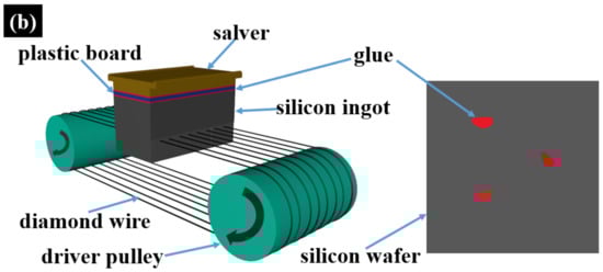 - Yin, Y.; Gao, Y.; Li, X.; Pu, T.; Wang, L. Experimental study on slicing photovoltaic polycrystalline silicon with diamond wire saw. Mater. Sci. Semicond. Process. 2020, 106, 104779. [Google Scholar] [CrossRef]