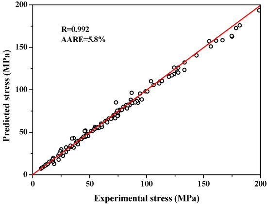 As shown in Figure 15, the correlation coefficient R of calculated and experimental flow stress is 0.992 and the average absolute relative error (AARE) is 5.8%. This shows that the calculated results of the model are reliable.
