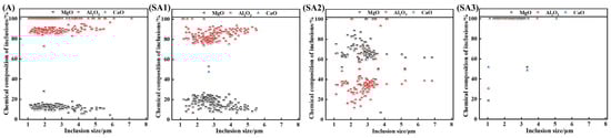 3.3. Impact of Slag Composition on Molten Steel Inclusions