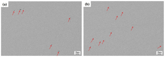 Comparison of inclusion distribution in Beam-1 (a) and Beam-2 (b) steels. The inclusion is marked by the red arrow.