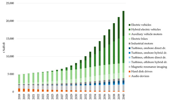Figure 2. Potential return flows by application in tons of NdFeB. Reprinted from Ref. [60].