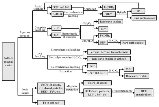 Figure 8. Flow chart of typical techniques for the electrochemistry of NdFeB magnet wastes.