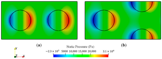 Static pressure distribution on the workpiece surface: (a) grid array pattern; (b) crossing array pattern.