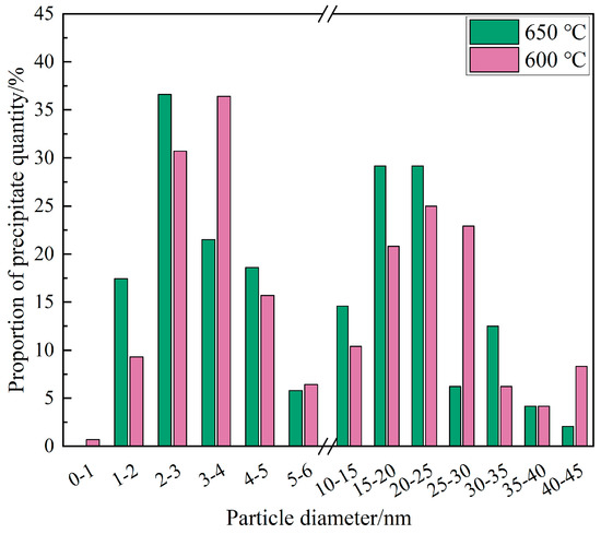 Size distribution of the second-phase precipitation in test steel at different coiling temperatures.