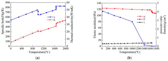 Temperature-dependent (a) thermo-physical and (b) thermo-mechanical material properties of Ti-6Al-4V used in the finite element model.