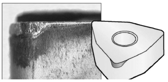 An effective machining process requires controlling and checking the tool’s wear propagation. The best way of the wear propagation is uniform flank wear of the cutting insert as shown in Figure 3.
