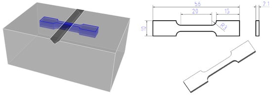 Figure 2. Sampling method and size of drawing sample of 7N01 aluminum alloy repaired by laser additive at room temperature (Unit: mm).