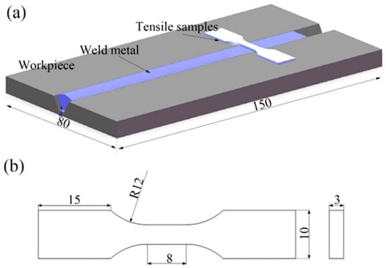 Schematic images of the joint (mm): (a) schematic of the joint assembly, (b) schematic of the tensile samples, unit: mm.