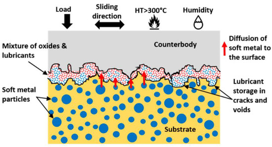 Figure 3. Diffusion mechanism of solid lubrication on soft metal matrix, reprinted from Ref. [45].