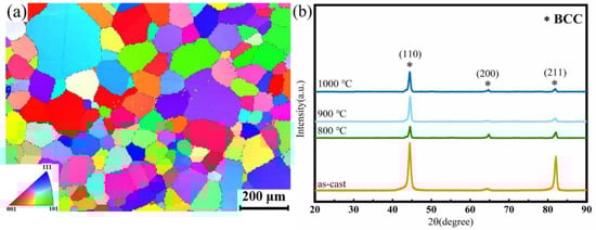 - Wen, X.; Jin, G.; Pang, X.J.; Cai, Z.B.; Zhang, Z.H.; Cui, X.F.; Wang, H.D.; Xu, B.S. Effect of heat treatment on microstructure and corrosion resistance of NiCrCoTiV high-entropy alloy prepared by vacuum hot-pressing sintering. Mater. Rep. B 2017, 31, 79–83. [Google Scholar]