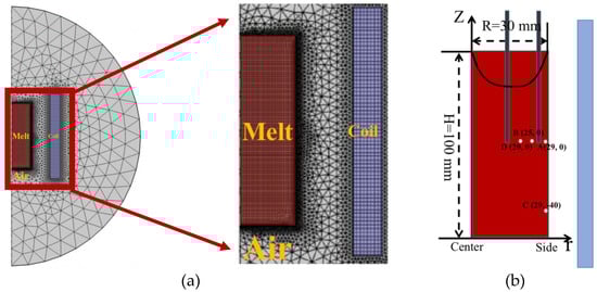 - The solidification system is cylindrically symmetric, and a two-dimensional axisymmetric mathematical model is established to solve the coupling problem between the electromagnetic field and the fluid field.