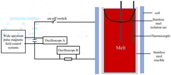 - Kolesnichenko, A.F.; Podoltsev, A.D.; Kucheryavaya, I.N. Action of Pulse Magnetic Field on Molten Metal. ISIJ Int. 1994, 34, 715–721. [Google Scholar] [CrossRef]