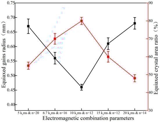 - Gong, Y.Y.; Cheng, S.-M.; Zhong, Y.-Y.; Wang, X.; Zhang, Y.-H.; Zhai, Q.-J.; Zhong, H.-G.; Xu, Z.-S.; Yue, R.; Pei, N. Influence of electromagnetic parameters on solidification structure of pure Al in the case of identical power. J. Iron Steel Res. Int. 2018, 25, 854–861. [Google Scholar] [CrossRef]