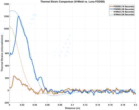 It is important to note that FOS used (LUNA ODISI-B) does not distinguish thermal and mechanical strains from each other. As such, when applying the FOS technique in the welding process which experiences large temperature gradients, it was necessary to isolate these components from each other. Newer techniques are being sought out to decouple the thermal and mechanical strains at the same point on the same section of fiber. The approach utilized in this study creates uncertainties when extracting the mechanical strain component, and hence it was not presented in this manuscript.