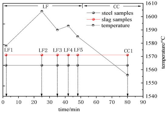 Schematics of samplings in the refining and casting process.