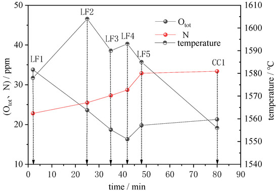 3.2. Changes of Otot and N Contents in Steel