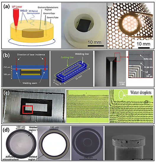 - Itoh, K.; Tamaki, T. Ultrafast laser microwelding for transparent and heterogeneous materials. In Proceedings of the Conference on Commercial and Biomedical Applications of Ultrafast Lasers VIII, San Jose, CA, USA, 20–23 January 2008. [Google Scholar]