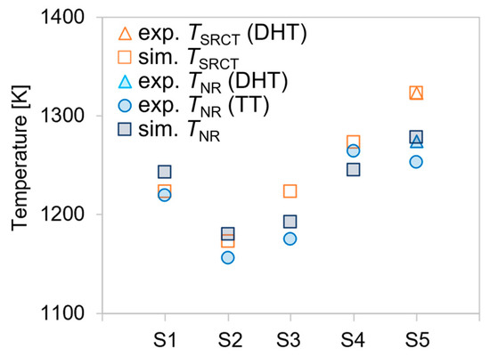 Comparison of experimentally determined recrystallization critical temperatures to values from semi-physical recrystallization simulation for alloys S1–S5.