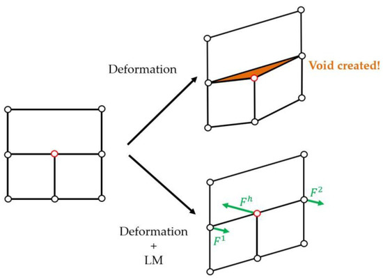 - Dana, S. Augmented lagrangian for treatment of hanging nodes in hexahedral meshes. arXiv 2018, arXiv:1809.04031. [Google Scholar] [CrossRef]