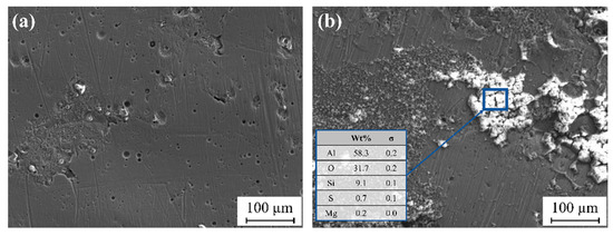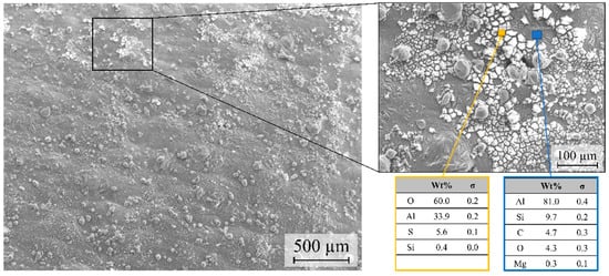 Stress-relieved samples were characterized by the deposition of corrosion products on the specimen surface. SEM observation confirmed the presence of aluminium oxides, as demonstrated by EDS analysis (Figure 7).