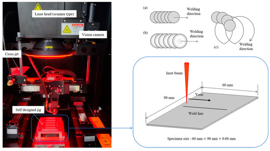 With the increasing emission of greenhouse gases, research on eco-friendly vehicles powered by hydrogen and electricity is being actively conducted to reduce the use of fossil fuels [1,2,3,4]. In particular, energy storage devices are the core technology of eco-friendly vehicles. Bipolar plates (BPPs) are an important component of fuel cells, and 316 L stainless steel is prominently used as a BPP material owing to its high mechanical strength, excellent corrosion properties, and reasonable price [5,6,7,8,9,10]. Laser welding is one of the most powerful methods to weld thin-foil stainless steel as it involves low heat input, a narrow welded area, high welding speed, and low distortion.