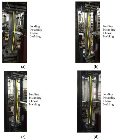 Torsional–Flexural buckling specimens: (a) 900 mm, (b) 1200 mm, (c) 1500 mm, (d) 1800 mm.