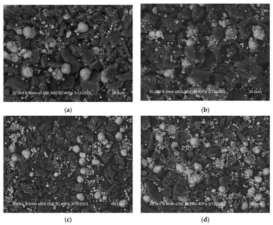 SEM images of (a) untreated black mass and black mass treated under (b) N2; (c) N2 + 2.5%O2; (d) N2 + 5%.