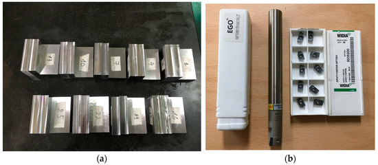 (a) Test samples; (b) Tool holder and cutting inserts.
