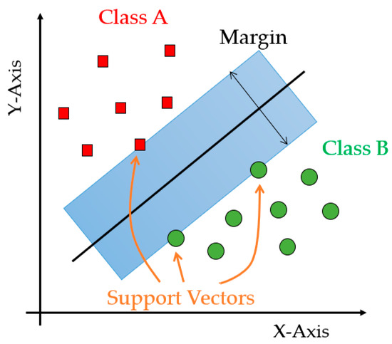Machine learning classification problems are frequently and extensively solved using support vector machines (SVM). An SVM’s objective is to choose the best hyperplane (which can be either a plane or a curve) for dividing the data into two distinct areas, with the closest point to the hyperplane being as far away from it as possible. This is also known as the margin. The hyperplane and margin are depicted in Figure 3.