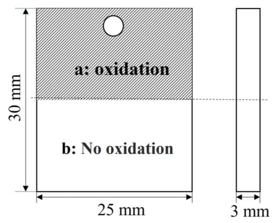 To characterize the growth of MAO coatings, the method of direct observation of the boundary area was used. The lower half of the sample was insulated and sealed to achieve non-oxidation of this area, as shown in Figure 1. The growth of the coating in and out was observed and calculated based on the non-oxidation half.