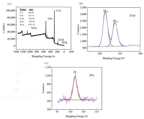 XPS Analysis of MAO Coatings. (a) The survey spectrum; (b) Zr 3d spectrum at pass energy of 20 eV; (c) Si 2p spectrum at pass energy of 20 eV.
