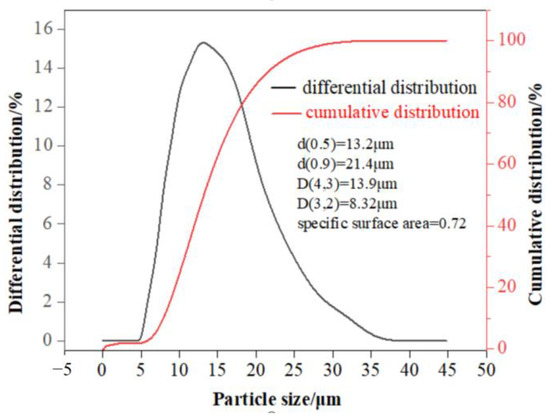 Figure 12 shows a range of the particle size distribution from 0 to 50 μm. It is found that the particles exhibit a small size, with d(0.5) and d(0.9) values of 13.2 μm and 21.4 μm, respectively. The volume average particle size D(4,3) is calculated to be 13.9 μm while the surface area average particle size D(3,2) is determined to be 8.32 μm. Additionally, the specific surface area of PJ10 is measured as 0.72 m2/g. Notably, PJ10 displays larger surface area and volume average particle size values in comparison to NJ, indicating that an addition of lead can result in the increase in the particle size.