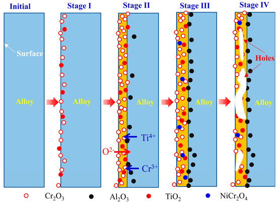 - Zheng, J.; Hou, X.; Wang, X.; Meng, Y.; Zheng, X.; Zheng, L. Isothermal oxidation mechanism of Nb–Ti–V–Al–Zr alloy at 700–1200 °C: Diffusion and interface reaction. Corros. Sci. 2015, 96, 186–195. [Google Scholar] [CrossRef]