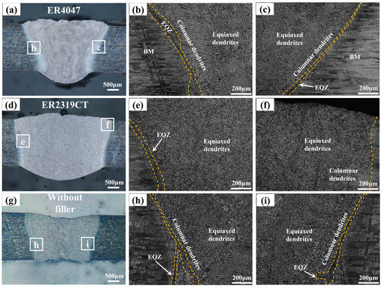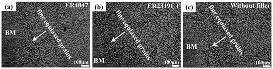 3.1. Microstructure of the Welded Joint Using Different Wires