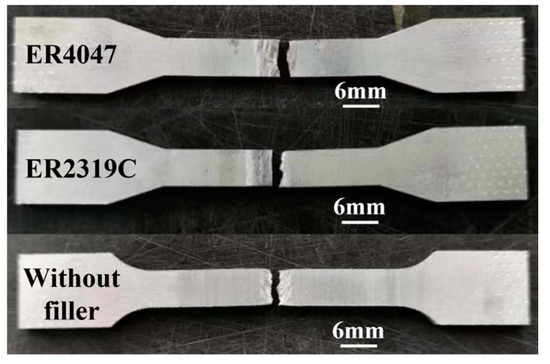 - Liu, Z.; Liu, P.; Xiang, H.; Huang, Y.; Ma, P.; Chen, Y.; Li, J.; Zhang, R. Effect of Filler Wire on Mechanical Properties, Microstructure and Natural Aging Behavior of 2A55 Al-Li Alloy TIG Welded Joint. Metals 2023, 13, 347. [Google Scholar] [CrossRef]