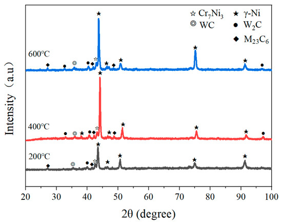 - Mazouzi, A.; Djerdjare, B.; Triaa, S.; Rezzoug, A.; Cheniti, B.; Aouadi, S.M. Effect of Annealing Temperature on the Microstructure Evolution, Mechanical and Wear Behavior of NiCr–WC–Co HVOF-Sprayed Coatings. J. Mater. Res. 2020, 35, 2798–2807. [Google Scholar] [CrossRef]