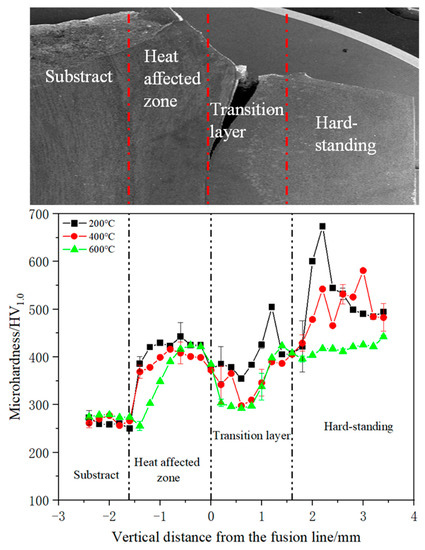 3.1. Microstructure Characterization of the Fabricated Surfacing Layer