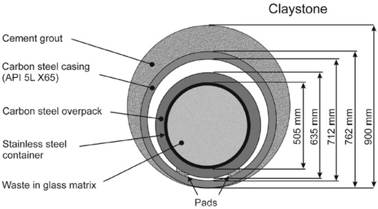 Cigeo will consist of separate disposal zones for HL- and intermediate-level IL-LLRW, as well as of connecting drifts and technical facilities. The HLRW disposal cells (Figure 1) will consist of carbon steel-lined micro-tunnels measuring about 60–70 cm in diameter and around 100 m in length. The initial annular space between the outer surface of the sleeve and the host rock will be filled with an “ASFM” (annular space-filling material) cementitious grout, which imposes corrosion-limiting environmental conditions.