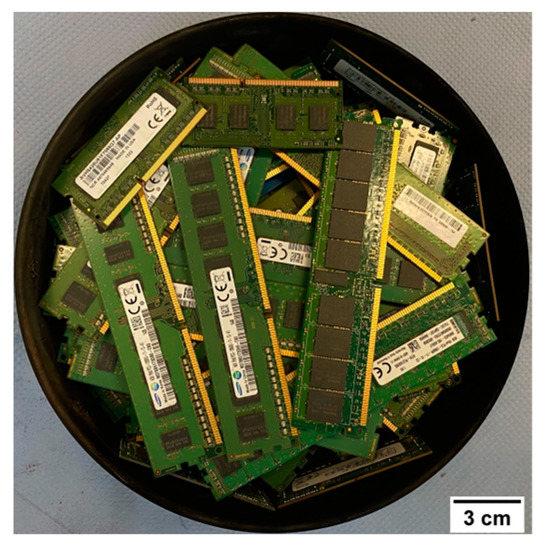 - Charles, R.G.; Douglas, P.; Hallin, I.L.; Matthews, I.; Liversage, G. An Investigation of Trends in Precious Metal and Copper Content of RAM Modules in WEEE: Implications for Long Term Recycling Potential. Waste Manag. 2017, 60, 505–520. [Google Scholar] [CrossRef]