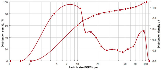 Grain size distribution of the RAM particles after pyrolysis and comminution to <0.75 mm determined by dynamic image analysis.