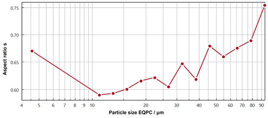 Distribution of the aspect ratio of the RAM particles after pyrolysis and comminution to <0.75 mm determined by dynamic image analysis.