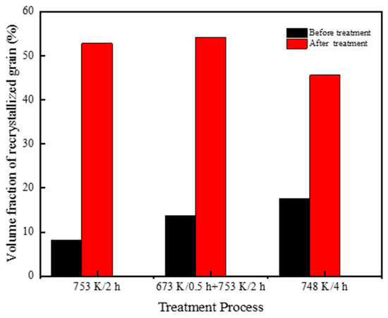 The volume fraction of recrystallized grains before and after solid solution treatment [15,16,17].