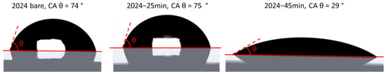 | 2024 after 45 min anodizing | 167.7 | 30.0 ± 0.3 | 14.6 | 2753 |