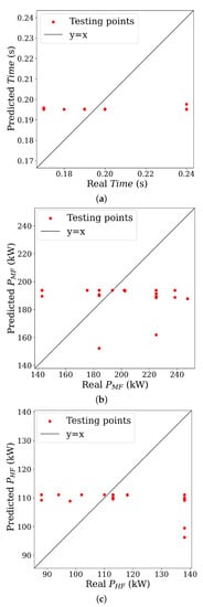 The process parameters are the time and generator powers and . Hence, the problem can be described as finding a model f such as: