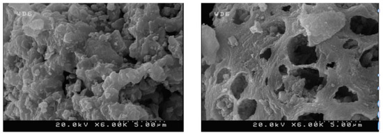 The effect of bioleaching in FE-SEM images of the surface morphology of the original HOFA particles (left) and the before and after bioleaching at ×6.00 K magnification (right). Reproduced from ref. [126] with permission from RSC.