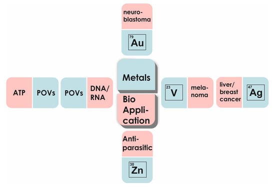 In recent years, there has been an increasing interest in the potential applications of metals in biology, including vanadium, silver, gold, and zinc. Polyoxometalates (POMs), which are a diverse family of metal–oxo anions of early transitional metal ions (Mo, W, V), are also gaining increasing interest in biomedicine due to their anticancer activities, among others. The present Special Issue reflects distinct and emergent 21st century biological applications of metal compounds and metal nanoparticles which exhibit anticancer, antiparasitic, and antidiabetic activities besides the use of POMs as artificial enzymes and the contribution of computational studies for understanding POVs’ interactions with biomolecules such as DNA (Figure 1). Within this Special Issue, a total of 28 authors from 6 countries were involved, including many young researchers, thus pointing out a new generation of scientists in the field. In fact, the future is bright for metal applications in biology!
